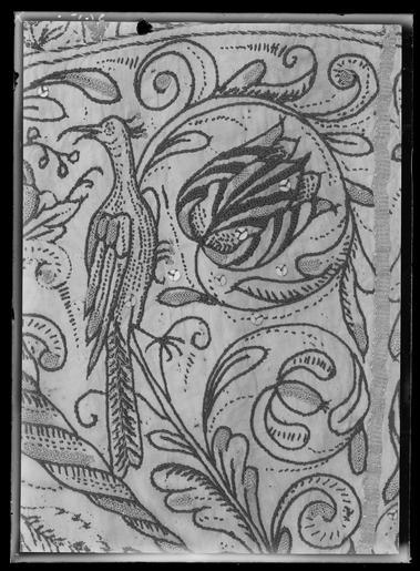 | Keywords: Linnestrumpa buren av Gustav II Adolf i slaget vid Lützen - Livrustkammaren - 26624.tif Strumpa av tuskaftat linne trådtäthet 37x37 per cm2 Tillskuren i fyra delar två kragstycken ben och fot som är hopsydda med efterstygn Kragens övre kant avslutas med 14 flikar formade som bågar Formen påminner om reticella-spetsens bågformade kanter Den är fodrad med ett grövre linne som skyddar broderiets baksida Kragens höjd är 28 cm och dess övre omkrets 68 cm Broderade i svart silke och guldtråd huvudsakligen i stjälkstygn Motivet är lika på kragens båda sidor Huvudmotivet är ett ymnighetshorn med frukter som äpple päron och druvor Vid sidan av hornet en fågel Den återstående ytan täcks av slingrande blad och stjälkar samt blommor som tulpan ros och liljekonvalj På varje flik på kragen är en liten blomma broderad Motiven är dekorerade med guldtrådar lan på silkekärna som sytts i flätmönster Över sömmarna och kring den övre kanten ligger ett slätt guldband Broderiet överensstämmer med den engelska typen av broderi med svart tråd som man kan se på linneplagg från sent 1500-tal och tidigt 1600-tal Strumpans ben respektive fot är skurna på snedden för att ge bättre elasticitet och passform Benstycket har en liten triangulär skarvbit placerad vid mittbaksömmen uppe vid kragen Foten är skarvad framme vid tån Stockings or w Boothose en of linen 37x37 thread count per square cm Cut into four parts two cuffs legs and feet which are sewn with backstitch The upper edge of the cuff ends with 14 arch-shaped tabs The shape of the tabs is reminiscent of reticella needlelace -edgings The cuff is lined with a coarse linen that protects the back of the embroidery The cuff height is 28 cm and its upper circumference is 68 cm The cuffs are embroidered in black silk and gold wire primarily in stem stitch The motif is the same on both sides of the collar The main subject is a cornucopia with fruits incluidng apples pears and grapes At the side of the horn is a bird The remaining area is covered by meandering leaves and stems and flowers such as tulips roses and lily of the valley Each tab on the collar has a small embroidered flower The motifs are decorated with gold threads gold-wrapped silk core sewn in a cable pattern Over the seams and around the top edge is a plain gold band The embroidery is consistent with the English type of embroidery with black thread blackwork that can be seen on the linen garments from the late 1500s and early 1600s The sock and foot pieces are cut on the bias to provide better elasticity and fit The leg pice has a small triangular gusset from the middle of the back seam up to the cuff The foot is seamed in front of the toe original caption Slaget vid Lützen 1632 size mm 630 häl-krage size mm 280 krage size mm 320 fot g 116 LRK Gustav II Adolf av Sverige Modelejon 2002 Jubileumsutst Lützen-Kapelle 2007 2007 place of origin original filename LN_B06533_009413 67690 inventory number LRK 31124 26624 CC0 Linnestrumpa buren av Gustav II Adolf i slaget vid Lützen - Livrustkammaren - 26624-negative tif <gallery caption Different images of same object > File Linnestrumpa strövling - Livrustkammaren - 68631 tif File Linnestrumpa - Livrustkammaren - 25703 tif File Linnestrumpa buren av Gustav II Adolf i slaget vid Lützen - Livrustkammaren - 35185 tif File Linnestrumpa strövling - Livrustkammaren - 77191 tif File Linnestrumpa strövling - Livrustkammaren - 8705 tif File Linnestrumpa buren av Gustav II Adolf i slaget vid Lützen - Livrustkammaren - 43744 tif File Linnestrumpa strövling - Livrustkammaren - 146 tif File Linnestrumpa strövling - Livrustkammaren - 60069 tif File Linnestrumpa strövling - Livrustkammaren - 147 tif File Linnestrumpa buren av Gustav II Adolf i slaget vid Lützen - Livrustkammaren - 52304 tif File Linnestrumpa strövling - Livrustkammaren - 77190 tif File Linnestrumpa strövling - Livrustkammaren - 17267 tif </gallery> < Clothes of Gustav II Adolf Stockings Linen clothing Blackwork embroidery 1630s fashion Embroidered clothing Media contributed by LSH dim-with multiple size templates Media contributed by LSH unmatched objKeyword Media contributed by LSH 2013-10 |