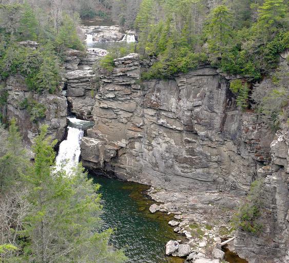 Keywords: Linville Falls-27527.jpg Linville Falls in the Linville Gorge Wilderness <br>Photo taken with a Panasonic Lumix DMC-FZ50 in Burke County North Carolina USA http //www kenthomas us KenThomas us<br> personal website of photographer 2007-04-14 15 28-04 <sup>ISO 8601</sup> Ken Thomas This image is released to the public domain and therefore no permission or credit is required <br>Comments and/or feedback however are always welcome See my user page for contact info 35 56 57 46 N 81 55 31 36 W heading WNW Linville Falls Taken with Panasonic Lumix DMC-FZ50 Rock formations in North Carolina |