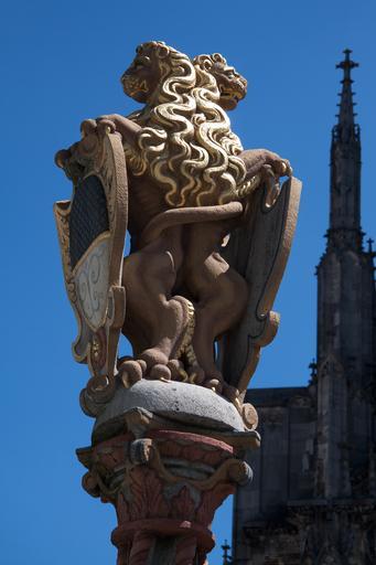 Keywords: lion gilded ulm city coat of arms building architecture münster church gothic middle ages monument pinnacle
