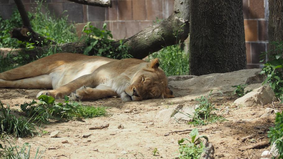 Keywords: lion sleeping animal wildlife mammal nature sleep resting brown feline fur carnivore predator cat africa zoo