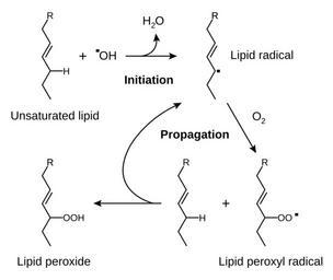 Keywords: Lipid peroxidation.svg Radical chain reaction mechanism of lipid peroxidation w Image Lipid peroxidation v2 png 2007-07-31 Tim Vickers after cite journal Young IS McEneny J Lipoprotein oxidation and atherosclerosis Biochem Soc Trans 29 Pt 2 358 “62 2001 PMID 11356183 http //www biochemsoctrans org/bst/029/0358/bst0290358 htm <br>Vectorized by Fvasconcellos Lipid peroxidation zh-cn svg <gallery> File Peroxidació de lÃpids png language ca File Lipid peroxidation svg language en File Lipid peroxidation-es svg language es File Lipid peroxidation-it png language it </gallery> Lipids Organic redox reactions |