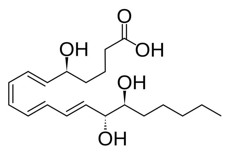 | Keywords: Lipoxin B4.svg Skeletal formula of lipoxin B<sub>4</sub> Created using http //www acdlabs com/download/chemsk html ACD/ChemSketch 10 0 and Inkscape Style made to resemble images by Calvero Own work after KEGG entry http //www genome jp/dbget-bin/www_bget cpd C06315 C06315 2007-11-02 Fvasconcellos 22 25 2 November 2007 UTC Eicosanoids |