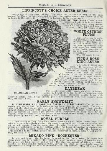 MAKE A MEME View Large Image Lippincott seeds (16373373245).jpg MISS C H LIPPINCOTT <br> LIPPINCOTT'S CHOICE ASTER SEEDS <br> Asters are of very easy culture The seeds oau be somii in Mav in the onen <br> ground for bloom in September and October; for earlier bloom ...