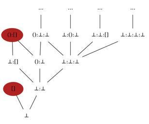 | Keywords: List domain graph.svg en Partial graph of <math>\sqsubseteq</math> for lists of units 2014-03-20 00 48 43 own Svick This file is a corrected version of wikibooks File List-graph png It was generated using the following dot code <source lang dot > graph rankdir BT ; bgcolor transparent ; node shape plaintext fillcolor firebrick color firebrick ; b label Š¥ ; e label shape ellipse style filled ; bb label Š¥ Š¥ ; ub label Š¥ ; be label Š¥ ; bbb label Š¥ Š¥ Š¥ ; ue label shape ellipse style filled ; ubb label Š¥ Š¥ ; bub label Š¥ Š¥ ; bbe label Š¥ Š¥ ; bbbb label Š¥ Š¥ Š¥ Š¥ ; ellip1 label ¦ ; ellip2 label ¦ ; ellip3 label ¦ ; ellip4 label ¦ ; b -- e; b -- bb; bb -- ub; bb -- be; bb -- bbb; ub -- ue; ub -- ubb; be -- ue; bbb -- ubb; bbb -- bub; bbb -- bbe; bbb -- bbbb; ubb -- ellip1; bub -- ellip2; bbe -- ellip3; bbbb -- ellip4; </source> cc-zero Uploaded with UploadWizard Hasse diagrams |