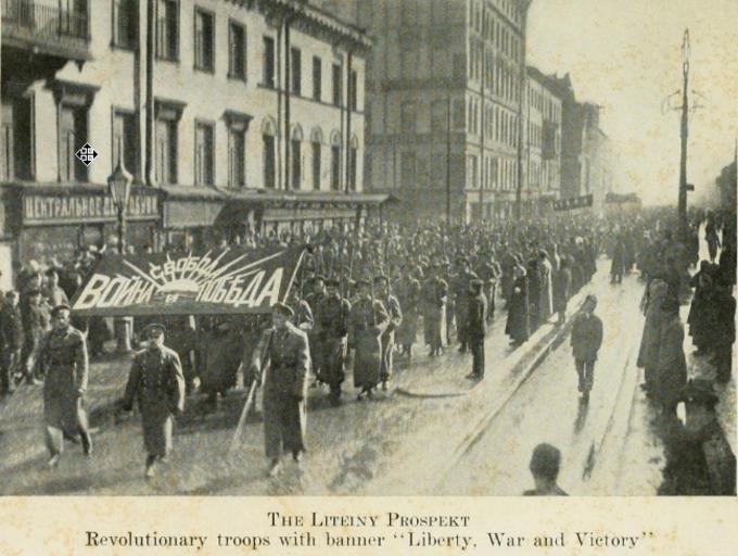 | Keywords: Liteiyny pr. (April 1917).jpg ru Демонст ация на Литейном п оспекте Пет ог ад после Фев альской еволюции 1917 г 2012-09-15 02 20 45 Book 'A diary of the Russian revolution' Published 1918 James L Houghteling PD-Art Uploaded with UploadWizard 1917 in Saint Petersburg |