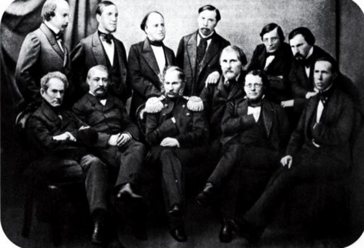 Keywords: Literary fund.jpg ru Пе вый комитет Лите ату ного фонда Фотог афия 1859 Сидят слева нап аво А В икитенко А А К аевский Е П Ковалевский И С Ту генев К Д Кавелин А Д Галахов; стоят С С Дудышкин Е И Ламанский А П Заблоцкий-Десятовский П В Анненков Г Че нышевский А В Д ужинин 1859 http //persons-info com/persons/ANNENKOV_Pavel_Vasilevich author other versions Custom license marker 2016 12 25 PD-old Pavel Annenkov