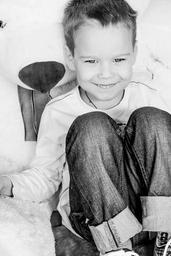 Keywords: little boy baby smile sotting black and white