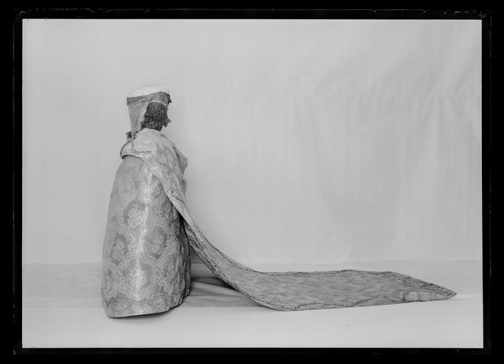 | Keywords: Liv till Sofia Magdalenas bröllopsklänning, robe de cour - Livrustkammaren - 9071.tif LSH artwork Johan Adam Ströwer livskräddare sv Tyget till bröllopsklänningen är troligen beställt från Frankrike Bröllopsklänningen är en sk robe de cour sydd efter rådande franskt mode Den ingick i Sofia Magdalenas trousseau och den lämnades in till Klädkammaren 1766 Dräktens ursprung har länge varit okänt men man har kunnat finna avgörande dokmument för att fastställa att dräkten är sydd i Köpenhamn av prinsessans danska hovskräddare Johan Adam Ströwer med tyg inköpt i Hamburg Smalt styvat liv med smal betonad midja Av silverbrokad med ett mönster i silver och vitt föreställande små girlander blommor och blad Livet har en utdragen spets mitt fram på sidorna runtom är skuret tolv små rundade flikar 70 mm höga bildandes ett skört Ovanför skörten löper ett silversnöre Klänningen har en rund vid ringning kantad av vit spets 50 mm bred av silkestyll som sammandragits med några stygn mitt fram Livet har ca 37 mm breda axelpartier kantade av en 10 mm bred silverspets av silvertråd och smala silverlan Ärmarna är löstagbara av flera lager av en tunn mönstrad gasväv kallade engageantes Sidsömmarna täcks av en 15 mm bred spets av silvertråd och smala silverlan Livet snöras ihop mitt bak av 13 snörhål på vardera sida Silvertyget har vikts upp på vardera sida om knäppningen som bredast upptill 80 mm Livet är på insidan fodrat med vit sidenrips sytt i smala kanaler för styvnaderna av valben Vid ringningen är silvertyget omvikt så att det bildar en 10 mm bred fåll på insidan original caption Gustav III och Sofia Magdalenas bröllop 1766 brocade Färg silver d1 - dräkt - yttermaterial material silverbrokad - silk Färg vit d2 - dräkt - foder material sidenrips - tulle Färg vit dekor material tyll - silver Färg silver dekor material silverlan size mm 365 mitt fram size mm 615 bröst LRK Sofia Magdalena av Sverige Brudklänningar 1986-1987 Fest och fritid vid hovet 2003 Dronningens Kjole 2004 Det elegante liv arb namn 2007 Bröllop för kung och fosterland 2010-2011 Livrustkammaren Livrustkammaren nya basutställning 2018 LRK bas 2018 Livrustkammaren Gustav III place of origin Köpenhamn original filename LN_B02241_005121 62593 inventory number LRK 25915 9071 CC0 Liv till Sofia Magdalenas bröllopsklänning robe de cour - Livrustkammaren - 9071-negative tif <gallery caption Different images of same object > File Liv insidan Brudklänning - Livrustkammaren - 39563 tif File Sofia Magdalenas bröllopsklänning bakifrån - Livrustkammaren - 73804 tif File Liv till Sofia Magdalenas bröllopsklänning robe de cour - Livrustkammaren - 9089 tif File Dräkt Gustav III gnr 3485 dräkt Sofia magdalena gnr 3502 Fel föremålsref - Livrustkammaren - 16527 tif File Liv till Sofia Magdalenas bröllopsklänning robe de cour - Livrustkammaren - 26195 tif File Sofia Magdalenas bröllopsklänning liv - Livrustkammaren - 22441 tif File Liv till Sofia Magdalenas bröllopsklänning robe de cour - Livrustkammaren - 35488 tif File Sofia Magdalenas bröllopsklänning liv - Livrustkammaren - 5317 tif File Liv till Sofia Magdalenas bröllopsklänning robe de cour - Livrustkammaren - 26927 tif File Sofia Magdalenas bilägersdräkt - Livrustkammaren - 55918 tif File Web rum D - Livrustkammaren - 87976 tif File Bröllopsklänning Sofia Magdalena - Livrustkammaren - 39562 tif File Sofia Magdalenas bilägersdräkt - Livrustkammaren - 17633 tif File Liv till Sofia Magdalenas bröllopsklänning robe de cour - Livrustkammaren - 18365 tif File Liv till Sofia Magdalenas bröllopsklänning robe de cour - Livrustkammaren - 19842 tif File Detalj Sofia Magdalenas bilägersdräkt - Livrustkammaren - 81600 tif File Liv till Sofia Magdalenas bröllopsklänning robe de cour - Livrustkammaren - 44047 tif File Liv till Sofia Magdalenas bröllopsklänning robe de cour - Livrustkammaren - 51874 tif File Liv till Sofia Magdalenas bröllopsklänning robe de cour - Livrustkammaren - 9803 tif File Sofia Magdalenas bröllopsklänning - Livrustkammaren - 82363 tif File Liv till Sofia Magdalenas bröllopsklänning robe de cour - Livrustkammaren - 2720 tif File Liv till Sofia Magdalenas bröllopsklänning robe de cour - Livrustkammaren - 60241 tif File Sofia Magdalenas bröllopsklänning Bild bakifrån med fullständigt släp - Livrustkammaren - 13878 tif </gallery> <gallery caption Related objects > File Mönsterdetalj på Sofia Magdalenas brudklänning - Livrustkammaren - 13801 tif LRK 25917 File Pallasch med sabelfäste Kavalleriet Norge 1730-1746 - Livrustkammaren - 1292 tif LRK 25916 File Kjol till Sofia Magdalenas bröllopsklänning robe de cour - Livrustkammaren - 18414 tif LRK 25916 File Rum D - Livrustkammaren - 87973 tif LRK 25916 File Detalj Sofia Magdalenas brudklänning släp - Livrustkammaren - 56682 tif LRK 25917 File Kjoldetalj Sofia Magdalenas brudklänning - Livrustkammaren - 48121 tif LRK 25916 File Släp bilägersdräkt Sofia Magdalena detalj - Livrustkammaren - 25089 tif LRK 25917 File Pressbild - Bröllop för kung och fosterland - Livrustkammaren - 87459 tif LRK 25916 </gallery> Gustav III of Sweden Dresses Media contributed by LSH unmatched material Media contributed by LSH dim-with multiple size templates Media contributed by LSH unmatched creator Media contributed by LSH 2016-12 |