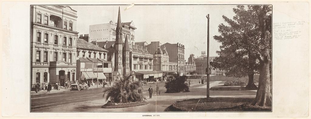 | Keywords: archives state records nsw staterecordsnsw newsouthwales blackandwhite sydney photo border monochrome black and white Title: Liverpool Street Dated: c. 1915 Digital ID: NRS20499_a050_000012 Series: NRS 20499 Most up-to-date Sydney panoramic views Rights: No known copyright restrictions www.records.nsw.gov.au/about-us/rights-and-permissions We'd love to hear from you if you use our photos/documents. Many other photos in our collection are available to view and browse on our website using Photo Investigator. Title: Liverpool Street Dated: c. 1915 Digital ID: NRS20499_a050_000012 Series: NRS 20499 Most up-to-date Sydney panoramic views Rights: No known copyright restrictions www.records.nsw.gov.au/about-us/rights-and-permissions We'd love to hear from you if you use our photos/documents. Many other photos in our collection are available to view and browse on our website using Photo Investigator. |