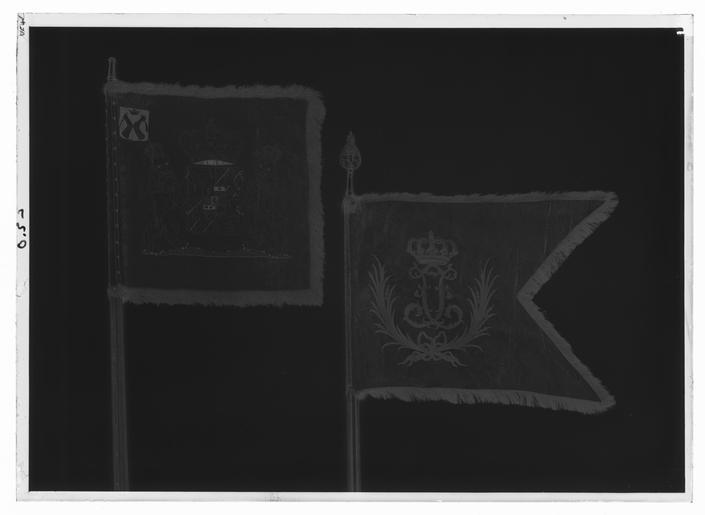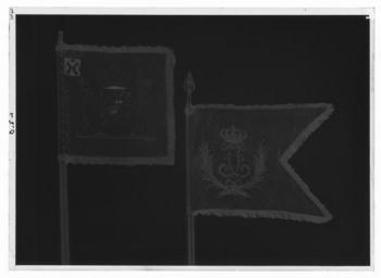 | Keywords: Livstandar vid Karelen och Viborgs läns kavalleri - Livrustkammaren - 35181-negative.tif Fredrik I av Sverige plain text Från Fredrik I s tid Duk av dubbel vit sidendamast sammansydd av två våder Mönsterrapport på damasten h 470 mm b 245 mm Dekor i applikationsbroderi lika på båda sidor med silke och påsytt siden svenska riksvapnet med Hessen-Kassels vapen i hjärtskölden Såsom sköldhållare två dubbelsvansade med slutna kronor krönta lejon med framåtvända ansikten stående på en 550 mm hög markbit Lejonen applicerade i vit atlas med konturbroderi i vitt och brunt silke Den stora slutna kronan fodrad med sammet ursprungligen röd numera brun Riksvapnet omges av ett vitt band vapnets botten av blå atlas; i övre inre hörnet ett 175 mm högt och 113 mm brett vapen med rött fält varpå två mot varandra vända väpnade armar mellan vilka en öppen krona Karelens vapen genomgående mycket blekta förutom hjärtvapnets mörkblå botten Karelens damast botten karmosinröd Frans enkel drejad av gult silke Duken fäst med tre rader tennlickor på svartkantade gula band Stång av trä kannelerad Löpande bärring Saknar klack Järnbeslagen Holk av förgylld mässing profilerad original caption - 1720 1728 silk Färg gul brun vit material silke - wood - brass - iron size mm 710 size mm 705 size mm 78 frans size mm 94 holk size mm 3480 stång total size mm 475 våd övre size mm 240 våd nedre LRK place of origin original filename LN_B06494_009374 53559 inventory number LRK 17005 35181 CC0 Livstandar vid Karelen och Viborgs läns kavalleri - Livrustkammaren - 35181 tif <gallery caption Different images of same object > File Livstandar vid Karelen och Viborgs läns kavalleri - Livrustkammaren - 26620 tif File Livstandar vid Karelen och Viborgs läns kavalleri - Livrustkammaren - 17550 tif File Livstandar vid Karelen och Viborgs läns kavalleri - Livrustkammaren - 51743 tif </gallery> |