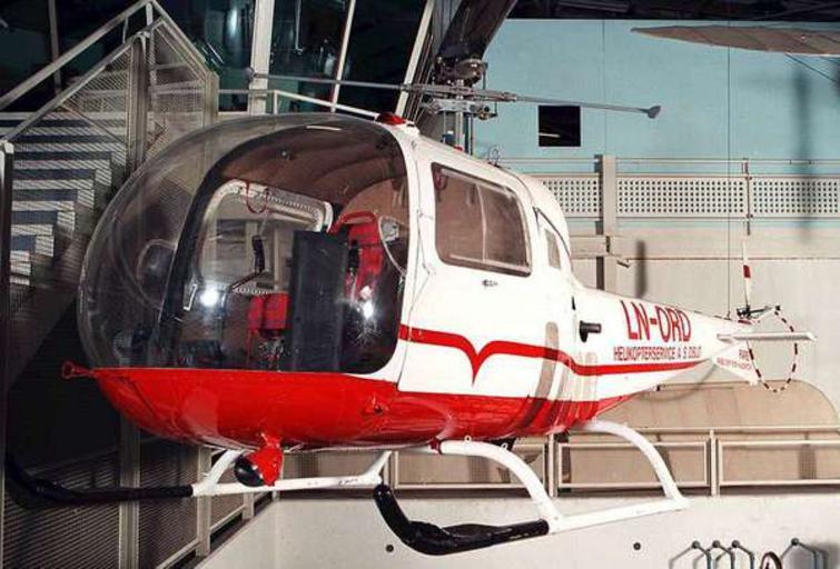 | Keywords: LN-ORD Bell 47J (NTM 17020).jpg  nb Allerede fra begynnelsen av 1900-tallet var det interesse for å lage flymaskiner som kunne lette og lande uten rullebane De avgjørende gjennombruddene kom i mellomkrigstiden ; En av de større produsentene har vært The Bell Aircraft Corporation Bell lanserte modell 47 i 1946 Dette var det første helikoptret i verden som ble godkjent for ordinær sivil trafikk Det ble laget en rekke versjoner av Bell 47-helikoptrene De ble brukt i Koreakrigen 1950-53 Helikoptrene var et nytt innslag i moderne krigføring De utførte rednings- og forsyningsoppdrag også bak motstandernes linjer ; Helikoptertrafikken kom til Norge med firmaet Helikopter Service som ble grunnlagt i 1956 Tre helikoptre av typen 47J Ranger ble bestilt da firmaet følte seg trygge på oppdrag Hovedaktiviteten i de første årene var utbyggingsoppdrag og kartmålinger i fjellområder En annen oppgave var demonstrasjon og opplæring for Forsvaret Helikoptrene ble tidlig brukt i både sivil og militær redningstjeneste med stasjonering i Tromsø Bodø Bergen og Oslo ; Den store vekstperioden for norsk helikoptertrafikk kom med oljeutvinningen i Nordsjøen fra begynnelsen av 1970-tallet I 1971 ble dette helikopteret som det første stasjonert i Nordsjøen Der fraktet det personell under byggingen av Ekofisk ; Produsent Agusta Gallarate Italia Under lisens The Bell Aircraft Corporation Texas USA ; Motor 1 Lycoming VO-435 220 hestekrefter ; Marsjfart 152 km/t ; Vekt fullastet 1665 kg ; Rekkevidde 320 km ; Antall seter 4 1957 http //www europeana eu/portal/record/2022608/NTM_NTM_17020 html Jan-Petter Helgesen Start rotoren 1991 cc-zero Uploaded with UploadWizard LN-ORD aircraft Images from Europeana Norsk Teknisk Museum |