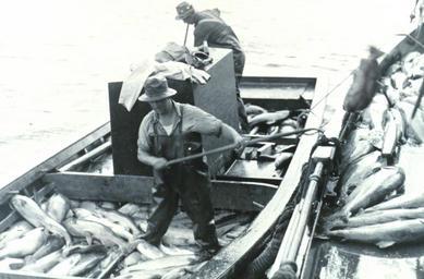 Keywords: Loading salmon.jpg en Knee-deep in salmon Salmon being transferred to a large boat on which they are iced and hauled to a cannery Southeast Alaska F W 12 935 NOAA Photolibrary http //www photolib noaa gov/htmls/fish1357 htm fish1357 NOAA's Historic Fisheries Collection Original photographer not named; Archival photograph by Mr Sean Linehan NOS NGS ~ 1938 Commercial fishing in Alaska Fishermen's clothing Waders footwear 1938 in Alaska Salmon fishing Fishermen from the United States Unloading fish PD-USGov