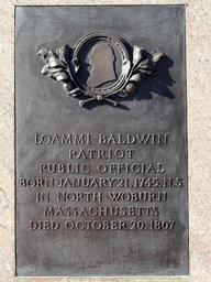 | Keywords: Loammi Baldwin by Herbert Adams, plaque - DSC04114.JPG en Loammi Baldwin memorial by Herbert Adams 1858-1945 Woburn Massachusetts USA This statue was created in 1917 and hence is now in the public domain According to the Smithsonian Institution's SIRIS system On bottom rear of sculpture near base HERBERT ADAMS SC/1917 Marked bottom left edge rear of base CAST BY/ROMAN BRONZE WORKS N Y On bronze plaque on front of base in raised letters LOAMMI BALDWIN/PATRIOT/PUBLIC OFFICIAL/BORN JANUARY 21 1745 N S /IN NORTH WOBURN/MASSACHUSETTS/DIED OCTOBER 20 1807 On bronze plaque on east side of base ONE OF THE PROPRIETORS/AND/A PRINCIPAL CONSTRUCTOR/OF THE MIDDLESEX CANAL/A MEMBER OF/THE COMMITTEE TO SIGN/THE PAPER MONEY OF/MASSACHUSETTS BAY COLONY/FIRST SHERIFF OF/MIDDLESEX COUNTY/UNDER THE STATE CONSTITUTION/A LEADER OF AFFAIRS/IN WOBURN On bronze plaque on west side of base A PARTICIPANT WITH THE/RANK OF MAJOR/IN THE BATTLES OF/LEXINGTON AND CONCORD/A COLONEL OF/THE 26TH REGIMENT OF/THE CONTINENTAL ARMY/WITH GENERAL WASHINGTON/DURING THE OCCUPATION/OF NEW YORK/AND IN THE BATTLE/OF TRENTON On bronze plaque on base of base BALDWIN APPLE/DISSEMINATOR OF THE APPLE/IN HONOR OF HIM CALLED/THE BALDWIN/WHICH PROCEEDED FROM A TREE/ORIGINALLY GROWING WILD/ABOUT TWO MILES NORTH/OF THIS MONUMENT signed Founder's mark appears 2012-02-12 own Daderot cc-zero Uploaded with UploadWizard Loammi Baldwin by Herbert Adams Raised letters |