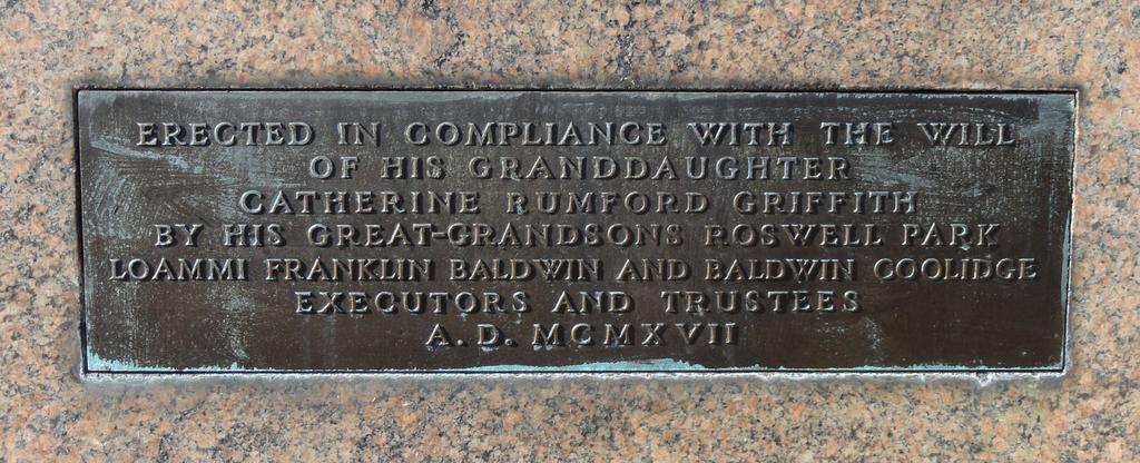 | Keywords: Loammi Baldwin by Herbert Adams, plaque - DSC04116.JPG en Loammi Baldwin memorial by Herbert Adams 1858-1945 Woburn Massachusetts USA This statue was created in 1917 and hence is now in the public domain According to the Smithsonian Institution's SIRIS system On bottom rear of sculpture near base HERBERT ADAMS SC/1917 Marked bottom left edge rear of base CAST BY/ROMAN BRONZE WORKS N Y On bronze plaque on front of base in raised letters LOAMMI BALDWIN/PATRIOT/PUBLIC OFFICIAL/BORN JANUARY 21 1745 N S /IN NORTH WOBURN/MASSACHUSETTS/DIED OCTOBER 20 1807 On bronze plaque on east side of base ONE OF THE PROPRIETORS/AND/A PRINCIPAL CONSTRUCTOR/OF THE MIDDLESEX CANAL/A MEMBER OF/THE COMMITTEE TO SIGN/THE PAPER MONEY OF/MASSACHUSETTS BAY COLONY/FIRST SHERIFF OF/MIDDLESEX COUNTY/UNDER THE STATE CONSTITUTION/A LEADER OF AFFAIRS/IN WOBURN On bronze plaque on west side of base A PARTICIPANT WITH THE/RANK OF MAJOR/IN THE BATTLES OF/LEXINGTON AND CONCORD/A COLONEL OF/THE 26TH REGIMENT OF/THE CONTINENTAL ARMY/WITH GENERAL WASHINGTON/DURING THE OCCUPATION/OF NEW YORK/AND IN THE BATTLE/OF TRENTON On bronze plaque on base of base BALDWIN APPLE/DISSEMINATOR OF THE APPLE/IN HONOR OF HIM CALLED/THE BALDWIN/WHICH PROCEEDED FROM A TREE/ORIGINALLY GROWING WILD/ABOUT TWO MILES NORTH/OF THIS MONUMENT signed Founder's mark appears 2012-02-12 own Daderot cc-zero Uploaded with UploadWizard Loammi Baldwin by Herbert Adams Raised letters |
