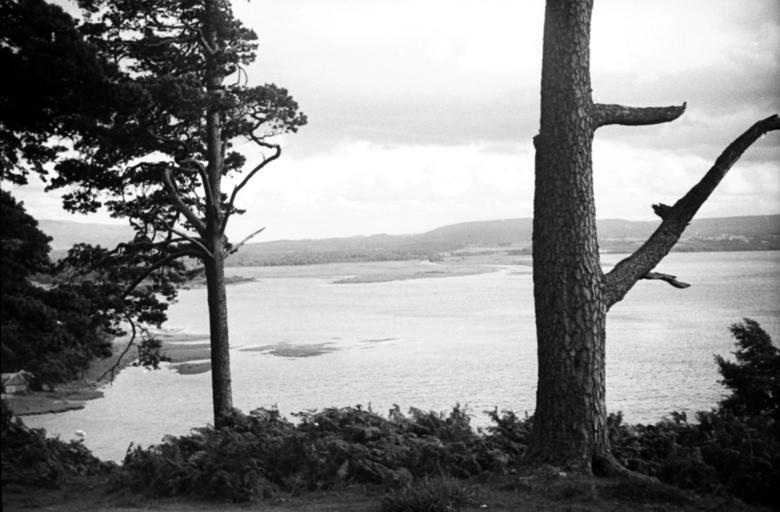 Keywords: View of Loch from hillside. Trees are pine.