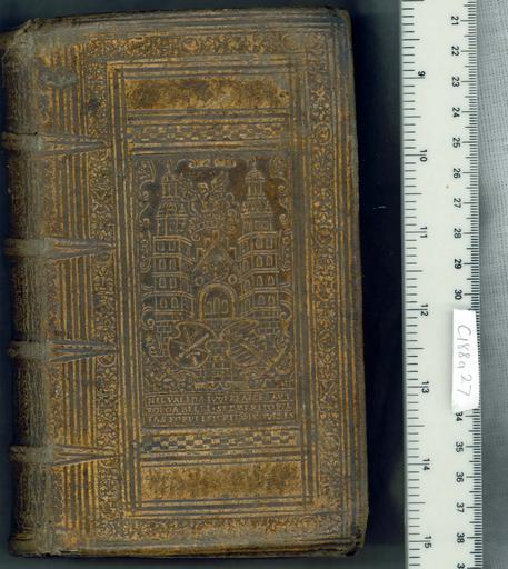 Keywords: Loci communes - Upper cover (c188a27).jpg Style Heads in medallions Panel design Pictorial; Caption Upper cover; Colour White / cream; Edge Unspecified exhibition history Decorative Technique Panel stamp in blind Tooled in blind; Cover Material Pigskin alum tawed Blue and white striped headbands tied down into sections 4 bands double Spine tooled in gold Ink ms notes on pastedowns object history Text 1598; Unspecified; Unspecified object type Cc-zero place of creation Binding Germany place of discovery Unspecified British Library image http //www bl uk/catalogues/bookbindings/LargeImage aspx RecordId 020-000013536 ImageId ImageId 46373 Copyright BL Loci communes Uploaded with GWToolset Loci communes - Upper cover c188a27 http //www webarchive org uk/bldatasets/bindings/15428_3 jpg Bookbinding 16th-century bookbinding British Library Bookbindings |