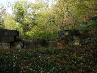 | Keywords: Lock 54 C and O Canal from NPS.jpg en Lock 54 NPS site says Construction of Lock 54 began in 1839 but due to the financial troubles of the Canal Co it was not completed until 1848 It is constructed of both grey limestone and tan sandstone much of it of inferior quality The lock was much repaired and patched over time and even timber was used on occasion The walls have shifted and tilted since the abandonment of the canal in the 1920s In 1974 the NPS filled the lock in with earth order to stabilize it National Park Service http //www hscl cr nps gov/insidenps/report asp STATE PARK CHOH STRUCTURE SORT RECORDNO 862 National Park Service Dept of Interior US Government Chesapeake Ohio Canal National Historical Park Locks water transport PD-USGov |