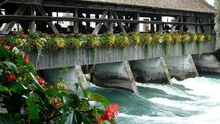 Keywords: lock aare thun switzerland pedestrian bridge old town river