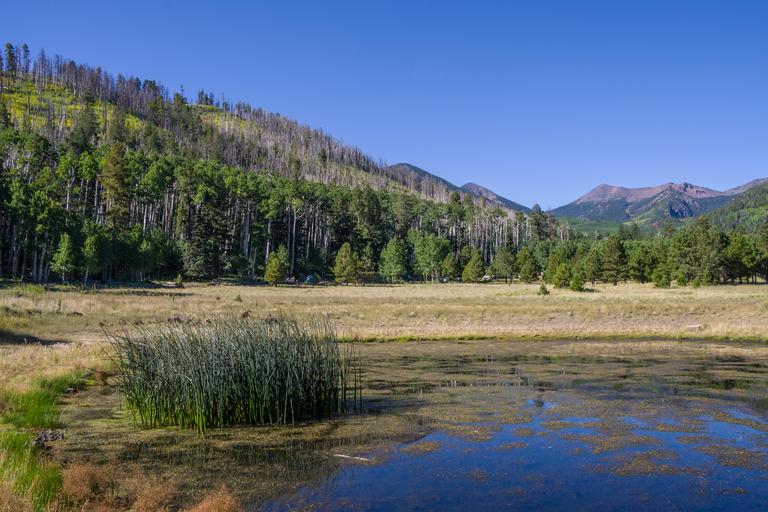 | Keywords: arizona coconino national forest coconinonationalforest flagstaff ranger district flagstaffrangerdistrict forest service forestservice lockett meadow lockettmeadow lockett meadow campground lockettmeadowcampground pentax k-1 pentaxk1 san francisco mountain sanfranciscomountain san francisco peaks sanfranciscopeaks usfs autumn campground flagstaff forest outdoors united states unitedstates outdoor hill landscape creek water watercourse mountainside lake Start of fall color in Lockett Meadow. This primitive campground and day use area offers a scenic view of the San Francisco Peaks in the cool aspen trees that surround Lockett Meadow. This is a terrific campground for those who cherish a real mountain camping experience and love to hike wilderness trails. There is a small day use area, making this a beautiful place to have a picnic and enjoy the meadow and Peaks views. The Inner Basin Trail ascends from Lockett Meadow into the caldera of the San Francisco Peaks, an extinct volcano and home of the tallest peaks in Arizona. The first 1.7 miles of the trail winds through the extensive aspen forest flanking the upper reaches of the Peaks, joining the Waterline Trail briefly before following a jeep road into the caldera. The trail starts at an elevation of 8665 feet, gaining approximately 1200 feet over 2 miles on its way into the Inner Basin. The trail continues another 2 miles, gaining an additional 600 feet or so to join up with the Weatherford Trail. Photo by Deborah Lee Soltesz, September 17, 2016. Source: U.S. Forest Service, Coconino National Forest. See Lockett Meadow Campground and Inner Basin No. 29 for information about this area of the Peaks on the Coconino National Forest website. Start of fall color in Lockett Meadow. This primitive campground and day use area offers a scenic view of the San Francisco Peaks in the cool aspen trees that surround Lockett Meadow. This is a terrific campground for those who cherish a real mountain camping experience and love to hike wilderness trails. There is a small day use area, making this a beautiful place to have a picnic and enjoy the meadow and Peaks views. The Inner Basin Trail ascends from Lockett Meadow into the caldera of the San Francisco Peaks, an extinct volcano and home of the tallest peaks in Arizona. The first 1.7 miles of the trail winds through the extensive aspen forest flanking the upper reaches of the Peaks, joining the Waterline Trail briefly before following a jeep road into the caldera. The trail starts at an elevation of 8665 feet, gaining approximately 1200 feet over 2 miles on its way into the Inner Basin. The trail continues another 2 miles, gaining an additional 600 feet or so to join up with the Weatherford Trail. Photo by Deborah Lee Soltesz, September 17, 2016. Source: U.S. Forest Service, Coconino National Forest. See Lockett Meadow Campground and Inner Basin No. 29 for information about this area of the Peaks on the Coconino National Forest website. |