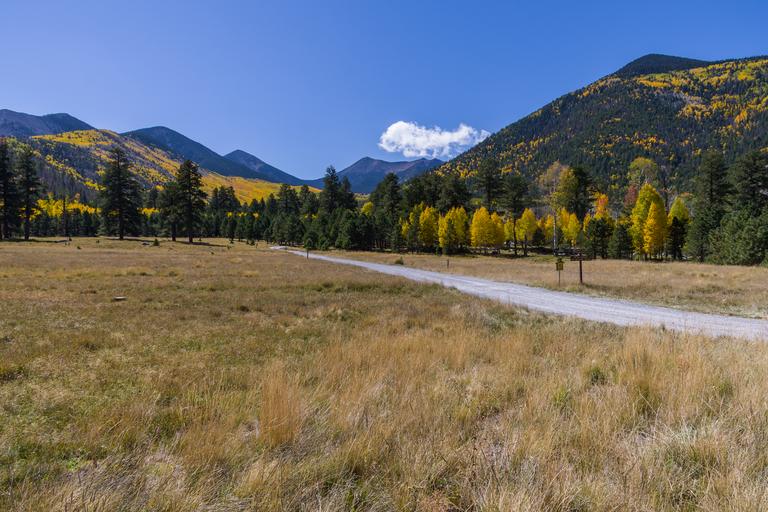 Keywords: arizona coconino national forest coconinonationalforest flagstaff ranger district flagstaffrangerdistrict forest service forestservice lockett meadow lockettmeadow lockett meadow campground lockettmeadowcampground national forest nationalforest pentax k-1 pentaxk1 usfs fall color fallcolor fall colors fallcolors fall foliage fallfoliage flagstaff forest outdoors united states unitedstates outdoor landscape hill foothill grassland field mountainside Fall color in Lockett Meadow, October 5, 2016. Most trees are peaking or past peak color in the Inner Basin. Trees are peaking or turning on lower Inner Basin Trail and in Lockett Meadow, with a few small groups past peak and losing leaves. This primitive campground and day use area offers a scenic view of the San Francisco Peaks in the cool aspen trees that surround Lockett Meadow. This is a terrific campground for those who cherish a real mountain camping experience and love to hike wilderness trails. There is a small day use area, making this a beautiful place to have a picnic and enjoy the meadow and Peaks views. The Inner Basin Trail ascends from Lockett Meadow into the caldera of the San Francisco Peaks, an extinct volcano and home of the tallest peaks in Arizona. The first 1.7 miles of the trail winds through the extensive aspen forest flanking the upper reaches of the Peaks, joining the Waterline Trail briefly before following a jeep road into the caldera. The trail starts at an elevation of 8665 feet, gaining approximately 1200 feet over 2 miles on its way into the Inner Basin. The trail continues another 2 miles, gaining an additional 600 feet or so to join up with the Weatherford Trail. Photo by Deborah Lee Soltesz, October 5, 2016. Source: U.S. Forest Service, Coconino National Forest. See Lockett Meadow Campground and Inner Basin No. 29 for information about this area of the Peaks on the Coconino National Forest website. Fall color in Lockett Meadow, October 5, 2016. Most trees are peaking or past peak color in the Inner Basin. Trees are peaking or turning on lower Inner Basin Trail and in Lockett Meadow, with a few small groups past peak and losing leaves. This primitive campground and day use area offers a scenic view of the San Francisco Peaks in the cool aspen trees that surround Lockett Meadow. This is a terrific campground for those who cherish a real mountain camping experience and love to hike wilderness trails. There is a small day use area, making this a beautiful place to have a picnic and enjoy the meadow and Peaks views. The Inner Basin Trail ascends from Lockett Meadow into the caldera of the San Francisco Peaks, an extinct volcano and home of the tallest peaks in Arizona. The first 1.7 miles of the trail winds through the extensive aspen forest flanking the upper reaches of the Peaks, joining the Waterline Trail briefly before following a jeep road into the caldera. The trail starts at an elevation of 8665 feet, gaining approximately 1200 feet over 2 miles on its way into the Inner Basin. The trail continues another 2 miles, gaining an additional 600 feet or so to join up with the Weatherford Trail. Photo by Deborah Lee Soltesz, October 5, 2016. Source: U.S. Forest Service, Coconino National Forest. See Lockett Meadow Campground and Inner Basin No. 29 for information about this area of the Peaks on the Coconino National Forest website.
