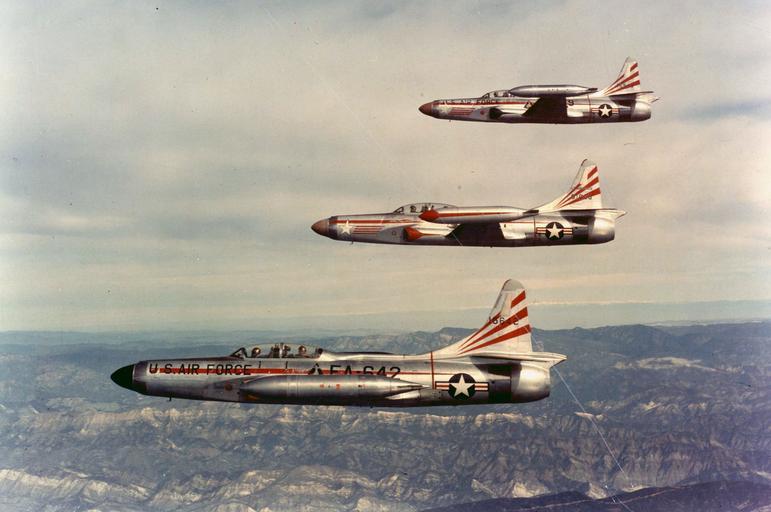 Keywords: lockheed f-94 f94 f-94c f94c jet fighter usaf starfire Formation of three F-94Cs (S/N 51-5642, 50-1063 and 51-5549) of the 354th Fighter Interceptor Squadron, Oxnard Air Force Base, Calif., on June 19, 1956. (U.S. Air Force photo) Formation of three F-94Cs (S/N 51-5642, 50-1063 and 51-5549) of the 354th Fighter Interceptor Squadron, Oxnard Air Force Base, Calif., on June 19, 1956. (U.S. Air Force photo)
