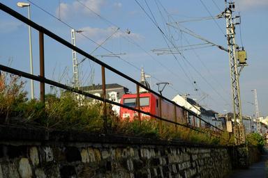 Keywords: loco electric locomotive locomotive railway rail traffic seemed movement wagons transport gleise train towing vehicle freight train drive red