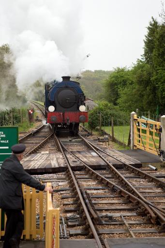 Keywords: locomotive railway heritage steam track points level crossing smoke vapour isle-of-wight