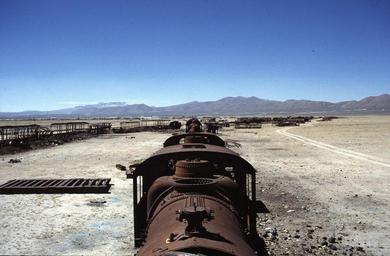 Keywords: LocomotiveCemetaryUyuni.jpg Locomotive Cemetary near Uyuni Bolivia Lokomotivfriedhof nahe Uyuni Bolivien Photo taken by Steffen Sledz 1996-03-14 Steffen Sledz Zone42 Salar de Uyuni Steam locomotives of Bolivia Mountains of Bolivia 1996 in Bolivia Damaged rolling stock |