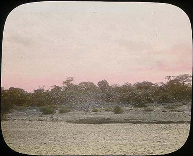 Keywords: somalia africa expedition d.g. elliot dgelliot carl akeley carlakeley 1896 zoology mammals specimen collection specimencollection outdoor Locust storm of insects. 1896. Name of Expedition: Africa Expedition Participants: D.G. Elliot and Carl Akeley Expedition Date: 1896 Purpose or Aims: Zoology Mammals Location: Africa, Somalia Original material: Hand-colored glass lantern slide Digital Identifier: CSZ6119_LS Learn more about The Field Museum's Library Photo Archives. Locust storm of insects. 1896. Name of Expedition: Africa Expedition Participants: D.G. Elliot and Carl Akeley Expedition Date: 1896 Purpose or Aims: Zoology Mammals Location: Africa, Somalia Original material: Hand-colored glass lantern slide Digital Identifier: CSZ6119_LS Learn more about The Field Museum's Library Photo Archives. |