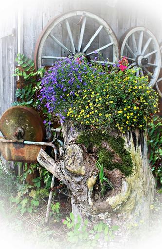 Keywords: log flowers nature in the free tree plant deco old grindstone landscape wheels wood