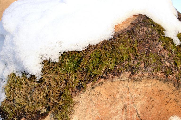 Keywords: log grain moss snow wood tree nature datailaufnahme sawed off bark green