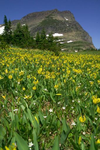 | Keywords: glacier national park glaciernationalpark glacier lily glacierlily spring beauty springbeauty oberlin mountain flower logan pass loganpass spring outdoor landscape field Glacier lilies carpet the Logan Pass area as soon as snow melts off, between June and late July. Here, they are intermixed with spring beauties as well. Mt. Oberlin is in the background. NPS/David Restivo Glacier lilies carpet the Logan Pass area as soon as snow melts off, between June and late July. Here, they are intermixed with spring beauties as well. Mt. Oberlin is in the background. NPS/David Restivo |