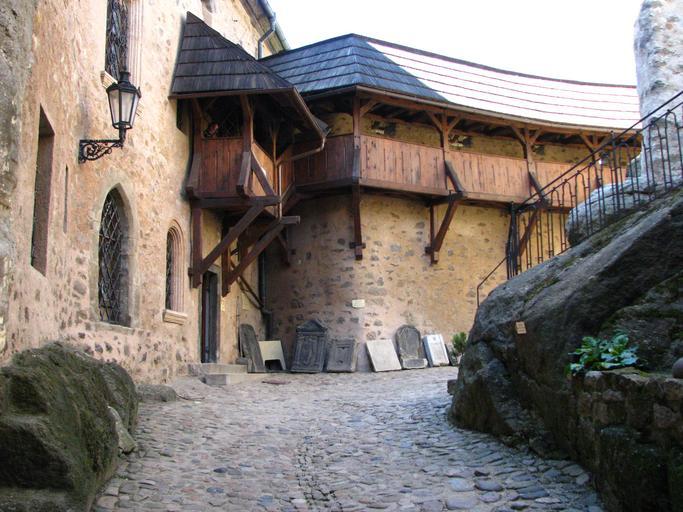 Keywords: Loket Castle - Margrave's House.JPG en Loket Castle - View of Margrave's House entrance door own Krenakarore 2010-08-21 Inside the Loket Castle - Tombstones coming from the former Loket cemetery can be clearly seen on the center of this picture Interior of Loket Castle |