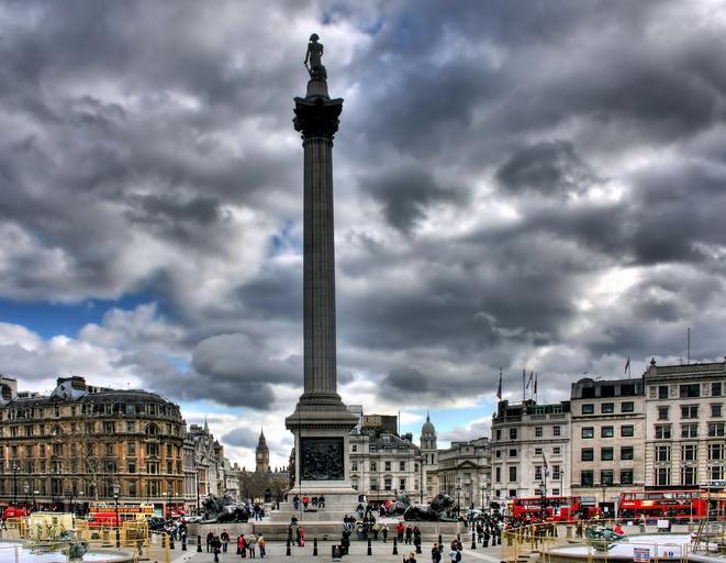 Keywords: london england trafalgar square landmark buildings architecture monument people plaza outside city cities skyline urban hdr