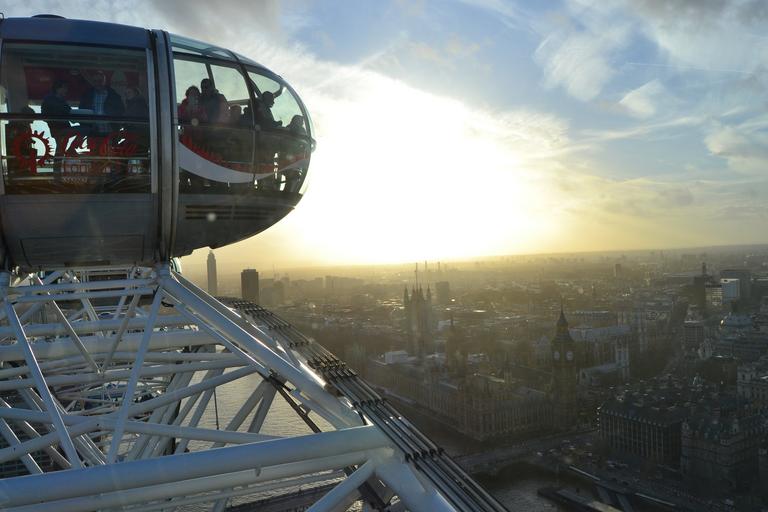 Keywords: london eye ferris wheel london sky blue sunset clouds gondola