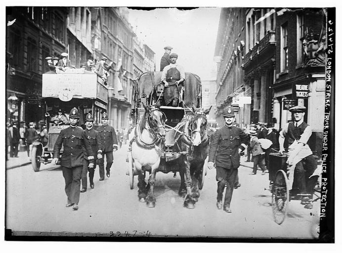 | Keywords: London strike. Truck under police protection (LOC).jpg Bain News Service publisher London strike Truck under police protection between 1910 and 1915 1 negative glass ; 5 x 7 in or smaller Notes Title from unverified data provided by the Bain News Service on the negatives or caption cards Forms part of George Grantham Bain Collection Library of Congress Format Glass negatives Rights Info No known restrictions on publication Repository Library of Congress Prints and Photographs Division Washington D C 20540 USA http //hdl loc gov/loc pnp/pp print hdl loc gov/loc pnp/pp print General information about the Bain Collection is available at http //hdl loc gov/loc pnp/pp ggbain hdl loc gov/loc pnp/pp ggbain Persistent URL http //hdl loc gov/loc pnp/ggbain 09511 hdl loc gov/loc pnp/ggbain 09511 Call Number LC-B2- 2247-4 http //www flickr com/photos/8623220 N02/2162645983/ London strike Truck under police protection LOC Uploaded by Diaa_abdelmoneim http //www flickr com/people/8623220 N02 The Library of Congress http //www loc gov/rr/print/195_copr html noknown PD-Bain LOC-image ggbain 09511 File Upload Bot Magnus Manske April 27 2009 1910s photographs London buses in unknown locations LGOC B-type Buses in the United Kingdom Horse transport in the United Kingdom Police of the United Kingdom Unidentified streets in London Flickr images from Library of Congress London buses on route 8 London in the 1910s Horse-drawn vehicles in London |