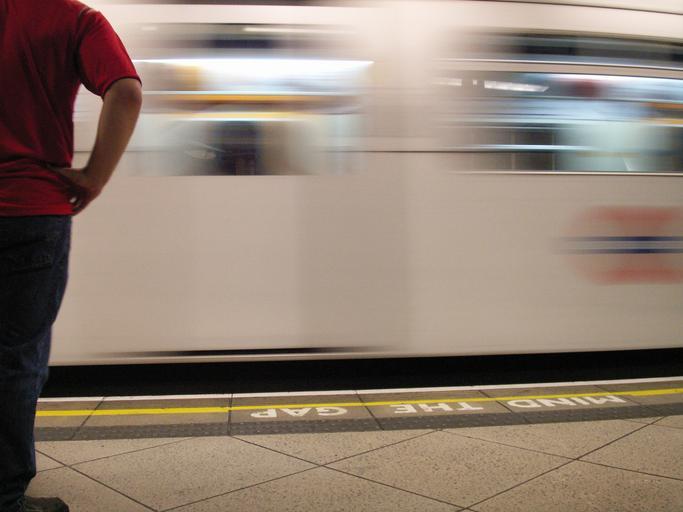 Keywords: London Train Arriving.JPG Uploaded on the english wikipedia by en User Juanscott Mind the gap at London Underground London Underground D78 Stock