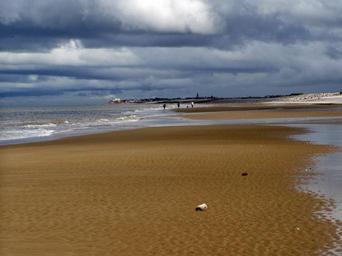 Keywords: lonely beach lonely beach sea loneliness sand beach bank clouds sand coast wide water holiday leave romance scotland