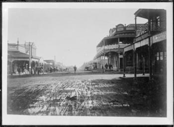 | Keywords: blackandwhite monochrome photo border outdoor skyline black and white Looking down a main street in Kaponga, South Taranaki. In the foreground, on the right is the Bank of New South Wales. Taken by D Duncan circa 1910. Inscriptions: Inscribed - Photographer's title on negative -bottom left: KAPONGA. NO.1971bottom right: D.DUNCAN. PHOTO. Quantity: 1 b&w original negative(s). Physical Description: Glass copy negative    Duncan, David, fl 1910s. Looking down a main street in Kaponga, South Taranaki - Photograph taken by David Duncan. Price, William Archer, 1866-1948 :Collection of post card negatives. Ref: 1/2-000744-G. Alexander Turnbull Library, Wellington, New Zealand. natlib.govt.nz/records/22690942 Looking down a main street in Kaponga, South Taranaki. In the foreground, on the right is the Bank of New South Wales. Taken by D Duncan circa 1910. Inscriptions: Inscribed - Photographer's title on negative -bottom left: KAPONGA. NO.1971bottom right: D.DUNCAN. PHOTO. Quantity: 1 b&w original negative(s). Physical Description: Glass copy negative    Duncan, David, fl 1910s. Looking down a main street in Kaponga, South Taranaki - Photograph taken by David Duncan. Price, William Archer, 1866-1948 :Collection of post card negatives. Ref: 1/2-000744-G. Alexander Turnbull Library, Wellington, New Zealand. natlib.govt.nz/records/22690942 |