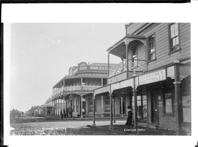| Keywords: blackandwhite monochrome photo border outdoor building architecture black and white Looking down a main street in Kaponga, South Taranaki. In the foreground, on the right is the Bank of New South Wales, with the Dominion Hotel beyond. Photograph taken by D Duncan circa 1910. Inscriptions: Inscribed - Photographer's title on negative -bottom left: KAPONGA. NO.1969bottom right: D.DUNCAN. PHOTO. Quantity: 1 b&w original negative(s). Physical Description: Glass copy negative    Duncan, David, fl 1910s. Looking down a main street in Kaponga, South Taranaki - Photograph taken by David Duncan. Price, William Archer, 1866-1948 :Collection of post card negatives. Ref: 1/2-000743-G. Alexander Turnbull Library, Wellington, New Zealand. natlib.govt.nz/records/22815907 Looking down a main street in Kaponga, South Taranaki. In the foreground, on the right is the Bank of New South Wales, with the Dominion Hotel beyond. Photograph taken by D Duncan circa 1910. Inscriptions: Inscribed - Photographer's title on negative -bottom left: KAPONGA. NO.1969bottom right: D.DUNCAN. PHOTO. Quantity: 1 b&w original negative(s). Physical Description: Glass copy negative    Duncan, David, fl 1910s. Looking down a main street in Kaponga, South Taranaki - Photograph taken by David Duncan. Price, William Archer, 1866-1948 :Collection of post card negatives. Ref: 1/2-000743-G. Alexander Turnbull Library, Wellington, New Zealand. natlib.govt.nz/records/22815907 |