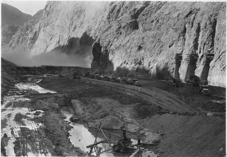 | Keywords: Looking downstream into upper cofferdam excavation. Percolation stops seen at right against Nevada abutment. - NARA - 293768.tiff Scope and content Photograph from Volume Two of a series of photo albums documenting the construction of Hoover Dam Boulder City Nevada General notes 293768 Local identifier Department of the Interior Bureau of Reclamation Engineering and Research Center 05/18/1981 - 03/04/1988 NARA's Rocky Mountain Region Denver NRGA Building 48 Denver Federal Center West 6th Avenue and Kipling Street Denver CO 80225-0307 1932-11-17 Record group Record Group 115 Records of the Bureau of Reclamation 1889 - 2008 Record group ARC 444 Photograph albums compiled 1903 - 1972 Series ARC 293611 File unit File unit ARC Variant control numbers NAIL Control Number NRG-115-CONSTPHO85006-BC21454 yes Other versions <gallery> File Looking downstream into upper cofferdam excavation Percolation stops seen at right against Nevada abutment - NARA - 293768 tiff tif File Looking downstream into upper cofferdam excavation Percolation stops seen at right against Nevada abutment - NARA - 293768 jpg jpg </gallery> NARA-cooperation PD-USGov NARA TIF images with categorized JPGs |