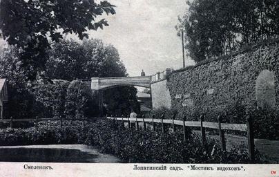 Keywords: Lopatinskiy garden 7.jpg en Lopatinsky garden in Smolensk View of the bridge of sighs preserved to this day ru Лопатинский сад в Смоленске Вид на мостик вздохов сох анился до наших дней О игинальная отк ытка е установлены before 1917 года PD-RusEmpire 20th-century postcards Postcards of Smolensk Lopatinsky garden |