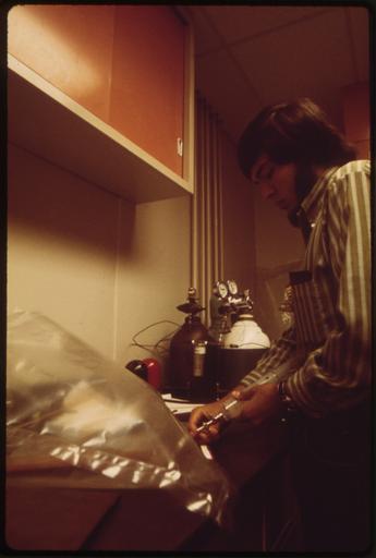 | Keywords: LOS ANGELES REACTIVE POLLUTANT PROGRAM (LARPP), A UNIQUE MULTI-AGENCY AIR POLLUTION RESEARCH STUDY SPONSORED BY THE... - NARA - 552385.jpg Scope and content LOS ANGELES REACTIVE POLLUTANT PROGRAM LARPP A UNIQUE MULTI-AGENCY AIR POLLUTION RESEARCH STUDY SPONSORED BY THE COORDINATING RESEARCH COUNCIL A GOVERNMENT-INDUSTRY RESEARCH GROUP USED IN THE PROJECT ARE THERMASONDES WEATHER-TESTING BALLOONS TETROONS AIRBORNE BUOYS USED TO MARK OFF GIVEN SECTION OF AIR FOR STUDY AND EPA HELICOPTERS FOR TRACING AND TAKING SAMPLES GROUND LEVEL SAMPLES ARE ALSO TAKEN INFORMATION IS TRANSMITTED BY RADAR CALIFORNIA AIR RESOURCES BOARD LABORATORY AFTER SMOG FILLED AIR SAMPLE BAGS HAVE BEEN BROUGHT IN FROM HELICOPTERS THE SAMPLED AIR IS REMOVED IN KNOWN QUANTITIES AND RUN THROUGH TESTING MACHINES TO DETERMINE ITS COMPOSITION General notes 552385 Local identifier 412-DA-9900 Environmental Protection Agency 12/02/1970 - NARA-Author Daniels Gene photographer Photographer 8463941 <br /> Los Angeles Los Angeles county California United States North and Central America inhabited place 4219264 34 05 -118 23 <br /> Still Picture Records Section Special Media Archives Services Division NWCS-S National Archives at College Park 8601 Adelphi Road College Park MD 20740-6001 09/1973 Record group Record Group 412 Records of the Environmental Protection Agency 1944 - 2006 Record group ARC 708 DOCUMERICA The Environmental Protection Agency's Program to Photographically Document Subjects of Environmental Concern compiled 1972 - 1977 Series ARC 542493 File unit File unit ARC Variant control numbers Agency-Assigned Identifier 165/60/009900<br /> NAIL Control Number NWDNS-412-DA-9900 Other versions <gallery> File LOS_ANGELES_REACTIVE_POLLUTANT_PROGRAM_ LARPP _A_UNIQUE_MULTI-AGENCY_AIR_POLLUTION_RESEARCH_STUDY_SPONSORED_BY_THE _-_NARA_-_552385 tif tif File LOS_ANGELES_REACTIVE_POLLUTANT_PROGRAM_ LARPP _A_UNIQUE_MULTI-AGENCY_AIR_POLLUTION_RESEARCH_STUDY_SPONSORED_BY_THE _-_NARA_-_552385 jpg jpg </gallery> NARA-cooperation PD-USGov Los Angeles Reactive Pollutant Program Tetroons |