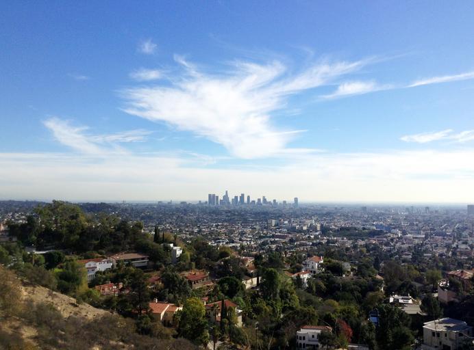 Keywords: los angeles skyline city buildings downtown cityscape sky clouds building urban california