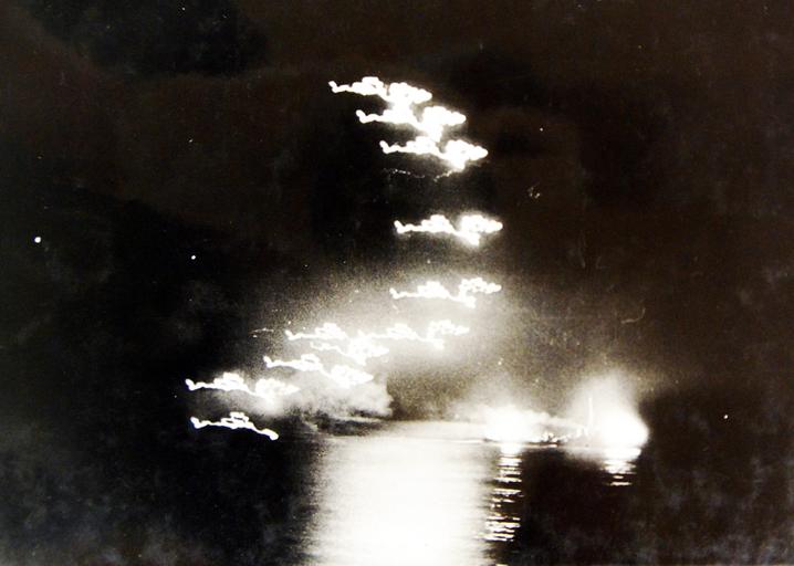 Keywords: outdoor Lot 11588-16: Activities in the Middle East. Syrian Coast, Gun Flashes From a British warship are seen at water-level, released August 1941. Photograph was taken during a night encounter between British and Vichy naval vessels off the coast of Syria. Ships of the Royal Australian Navy were engaged in the ensuring action during which it is thought, a Vichy destroyer was badly damaged and probably sunk. The Vichy ships escaped into the darkness and entered Beirut harbor where subsequent aerial reconnaissance established the fact that a Vichy destroyer was lying there badly damaged. The shell-fire pattern resembles aircraft in formation. Office of War Information Photograph. (2016/02/11). Lot 11588-16: Activities in the Middle East. Syrian Coast, Gun Flashes From a British warship are seen at water-level, released August 1941. Photograph was taken during a night encounter between British and Vichy naval vessels off the coast of Syria. Ships of the Royal Australian Navy were engaged in the ensuring action during which it is thought, a Vichy destroyer was badly damaged and probably sunk. The Vichy ships escaped into the darkness and entered Beirut harbor where subsequent aerial reconnaissance established the fact that a Vichy destroyer was lying there badly damaged. The shell-fire pattern resembles aircraft in formation. Office of War Information Photograph. (2016/02/11).