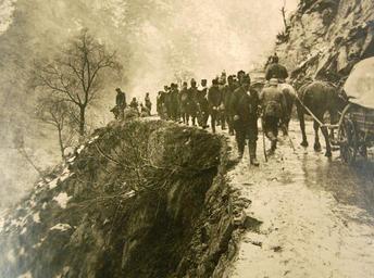 | Keywords: outdoor Lot 3619-6:   German Military Activities, World War I.  Serbian troops, now prisoners-of-war in Belgrade, march into German captivity as they pass a German transport train in a mountain pass between Macedonia and Montenegro, 1915.  Photograph by F.J.M. Reshe, Munchen, Germany.   (10/2/2015). Lot 3619-6:   German Military Activities, World War I.  Serbian troops, now prisoners-of-war in Belgrade, march into German captivity as they pass a German transport train in a mountain pass between Macedonia and Montenegro, 1915.  Photograph by F.J.M. Reshe, Munchen, Germany.   (10/2/2015). |