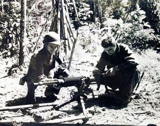 Keywords: outdoor Lot-909-7 (111-SC-162499): Private Waino Lehto and Private Joseph G. Kovach examining a Japanese machine gun captured in New Guinea, December 31, 1942. U.S. Army Signal Corps Photograph. Courtesy of the Library of Congress. (2016/04/15). Lot-909-7 (111-SC-162499): Private Waino Lehto and Private Joseph G. Kovach examining a Japanese machine gun captured in New Guinea, December 31, 1942. U.S. Army Signal Corps Photograph. Courtesy of the Library of Congress. (2016/04/15). |