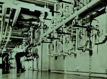 Keywords: Lot-9432-22: Sulfur, Scare In World War I, Is Plentiful Today. Although not generally know, sulfur is one of warfare’s vital elements. Indispensable in the manufacture of explosives, it is also a component of sulfuric acid, which is one of the important wartime chemicals. Unlike the condition prevailing in World War I, when a shortage of sulfur, due largely to the lack of improved mining facilities, was a threat to the Allied war effort, the element is plentiful today. One of the world’s richest single sources of Sulfur is the stratum in Louisiana and Texas, on the Gulf Coast of the United States. Shown: Forcing super-heated water into the stratum, some 1,500 feet underground, to melt the sulfur is the first step in mining. This bank of gas-fired boilers furnishes the hot water. Office of War Information Photograph, 9-15 April 1942. Original photograph is small. (2015/12/18). Lot-9432-22: Sulfur, Scare In World War I, Is Plentiful Today. Although not generally know, sulfur is one of warfare’s vital elements. Indispensable in the manufacture of explosives, it is also a component of sulfuric acid, which is one of the important wartime chemicals. Unlike the condition prevailing in World War I, when a shortage of sulfur, due largely to the lack of improved mining facilities, was a threat to the Allied war effort, the element is plentiful today. One of the world’s richest single sources of Sulfur is the stratum in Louisiana and Texas, on the Gulf Coast of the United States. Shown: Forcing super-heated water into the stratum, some 1,500 feet underground, to melt the sulfur is the first step in mining. This bank of gas-fired boilers furnishes the hot water. Office of War Information Photograph, 9-15 April 1942. Original photograph is small. (2015/12/18). |