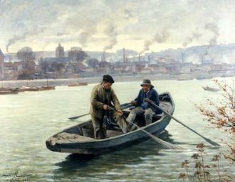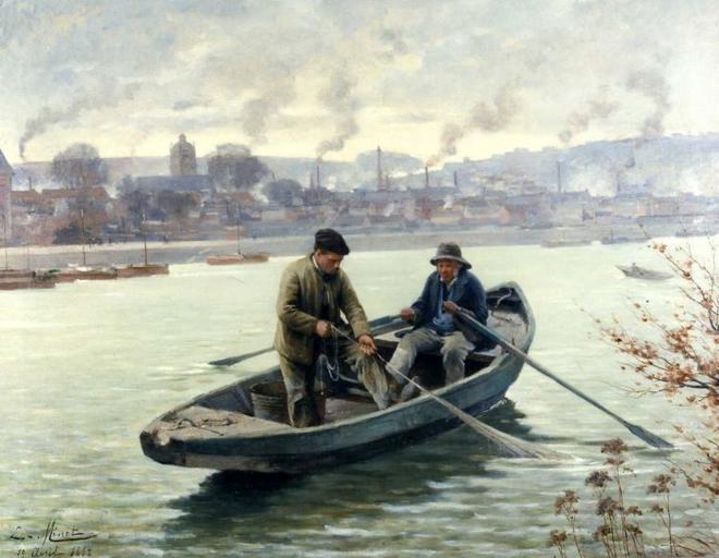 | Keywords: Louis-Émile Minet La pêche à la violette.jpg Artwork Creator Louis-Émile Minet Two fishermen in a boat 1887 Oil on canvas Size cm 115 5 143 musée d'Elbeuf Elbeuf object history credit line accession number Joconde M1099000012 PD-old-80 19th-century paintings Paintings of men of France Musée d'Elbeuf Louis-Émile Minet Paintings of Normandy Fishing in France |