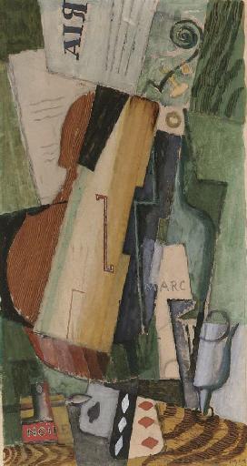 | Keywords: Louis Marcoussis Violon bouteilles de Marc et cartes 1919.jpg Violon bouteilles de Marc et cartes Violin Marc bottles and cards Signed and dated Marcoussis 1919 Gouache and watercolor over charcoal on paper 45 8 x 24 5 cm Christie's online 4599722 1919 Creator Louis Marcoussis PD-old-auto 1941 Louis Marcoussis 1919 paintings Violins in paintings Playing cards in art | ||||